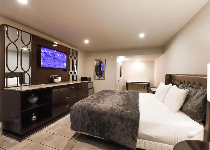 Boardwalk Suites biedt 7 gastenkamers uitgerust met een bureau, een flatscreen TV met satellietzenders en airconditioning voor een gezellig verblijf in Las Vegas. Sommige kamers beschikken over een privébadkamer.